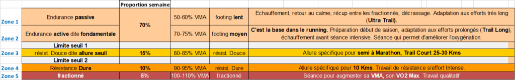(8) Les zones d’allure pour l’entrainement :